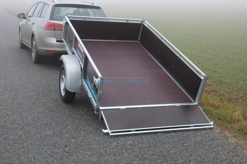 - Sklopná korba s výškou bočníc 40 cm (ľahšie naložíte traktor/kosačku).