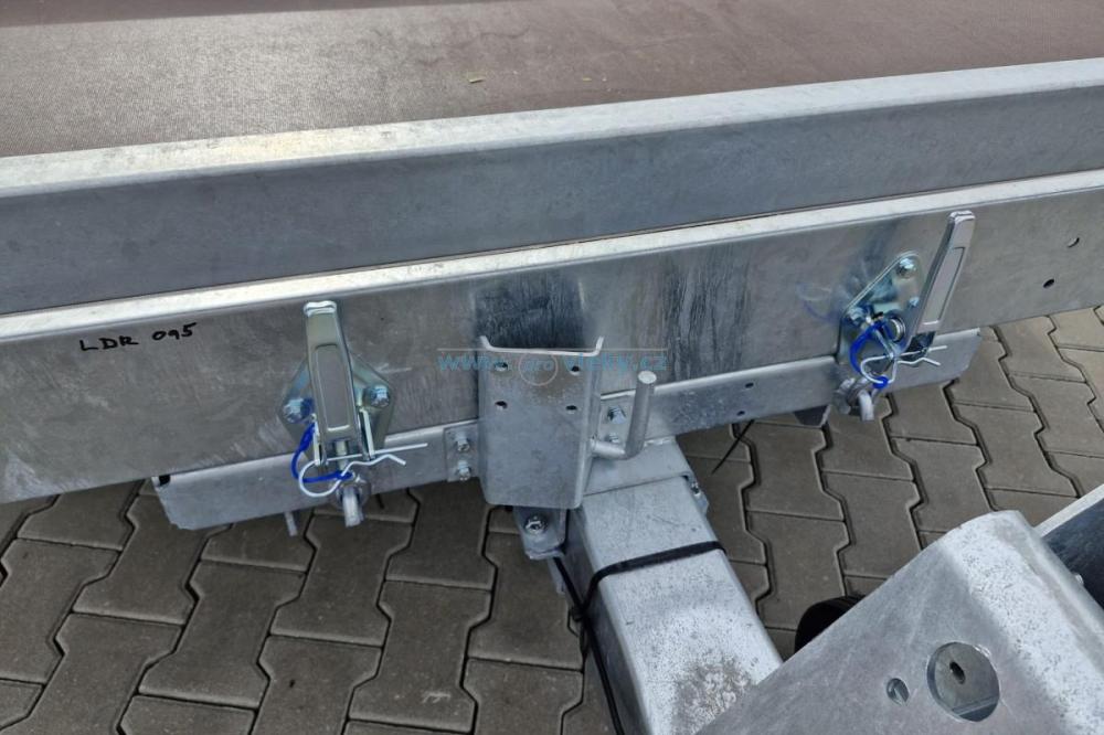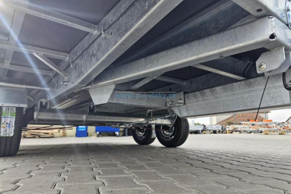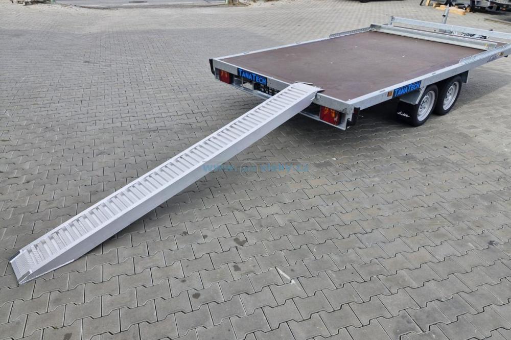 • Hliníkové nájazdy uschované pod ložnou plochou prívesu. Možnosť posuvu po celej dĺžke ložnej plochy. Plne sa prispôsobí šírke prívesu.