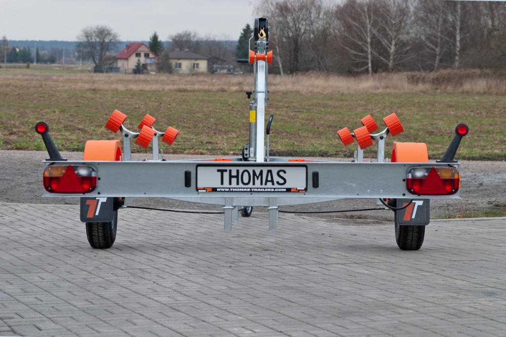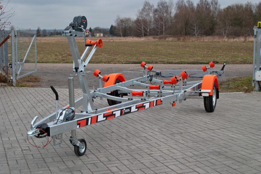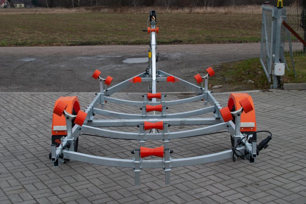 - Náprava, podpery, zadné koryto a oje je možné posúvať na nájdenie optimálneho posadenia lode a ťažiska prívesu pri naložení